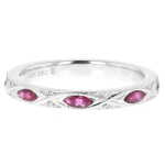 14k White Gold 0.45 Carat Marquise Ruby & Diamond Alternating Engraved Band