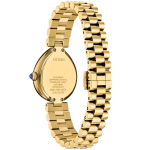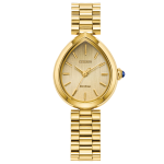 Citizen 'L Rainell' gold-tone stainless steel ladies watch—elegant teardrop design with eco-drive tech. Water-resistant and battery-free, ideal for eco-conscious fashionistas.