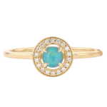 14k Yellow Gold 0.16 Carat Round Opal & Diamond Halo Ring